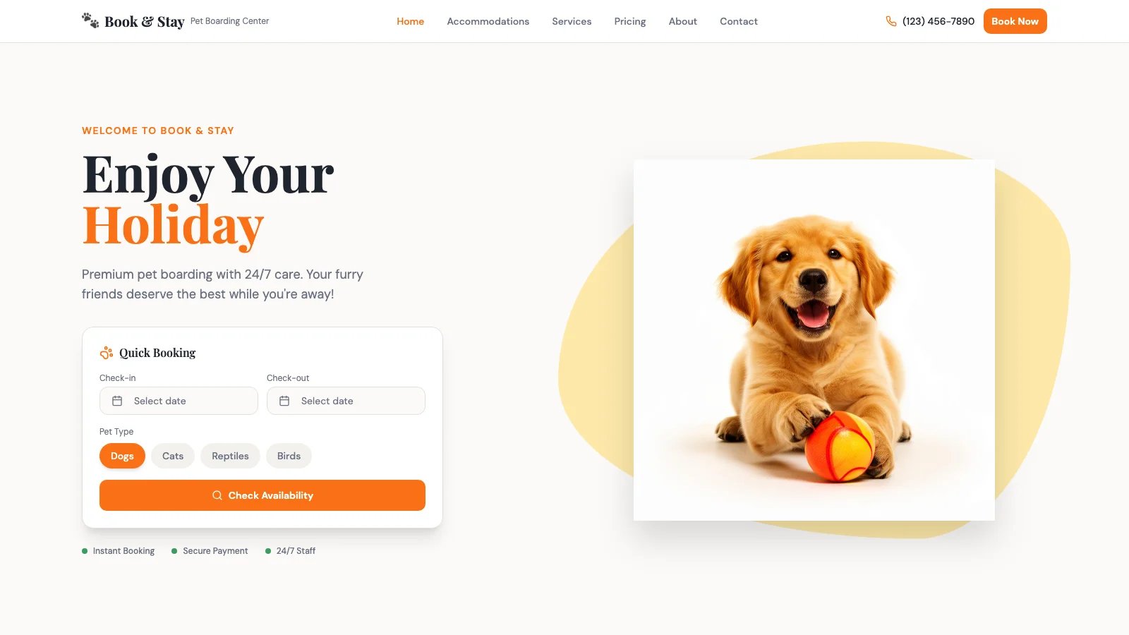 Warm, trust-building pet boarding page